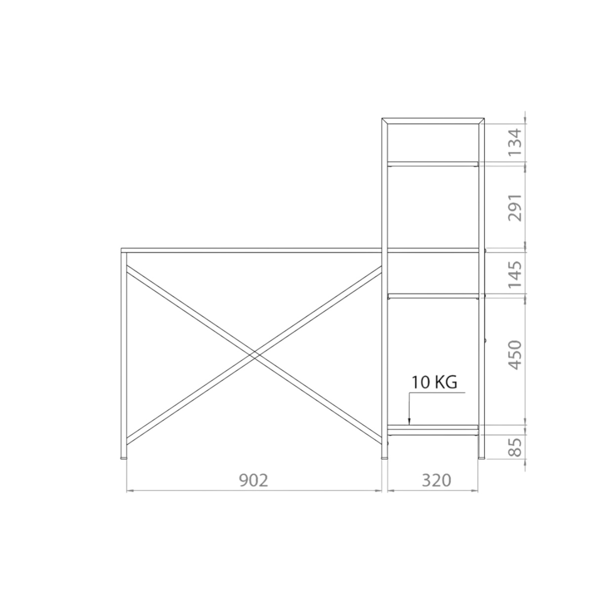 Este mueble es un escritorio simple de grandes dimensiones, con una biblioteca vertical en el lateral.