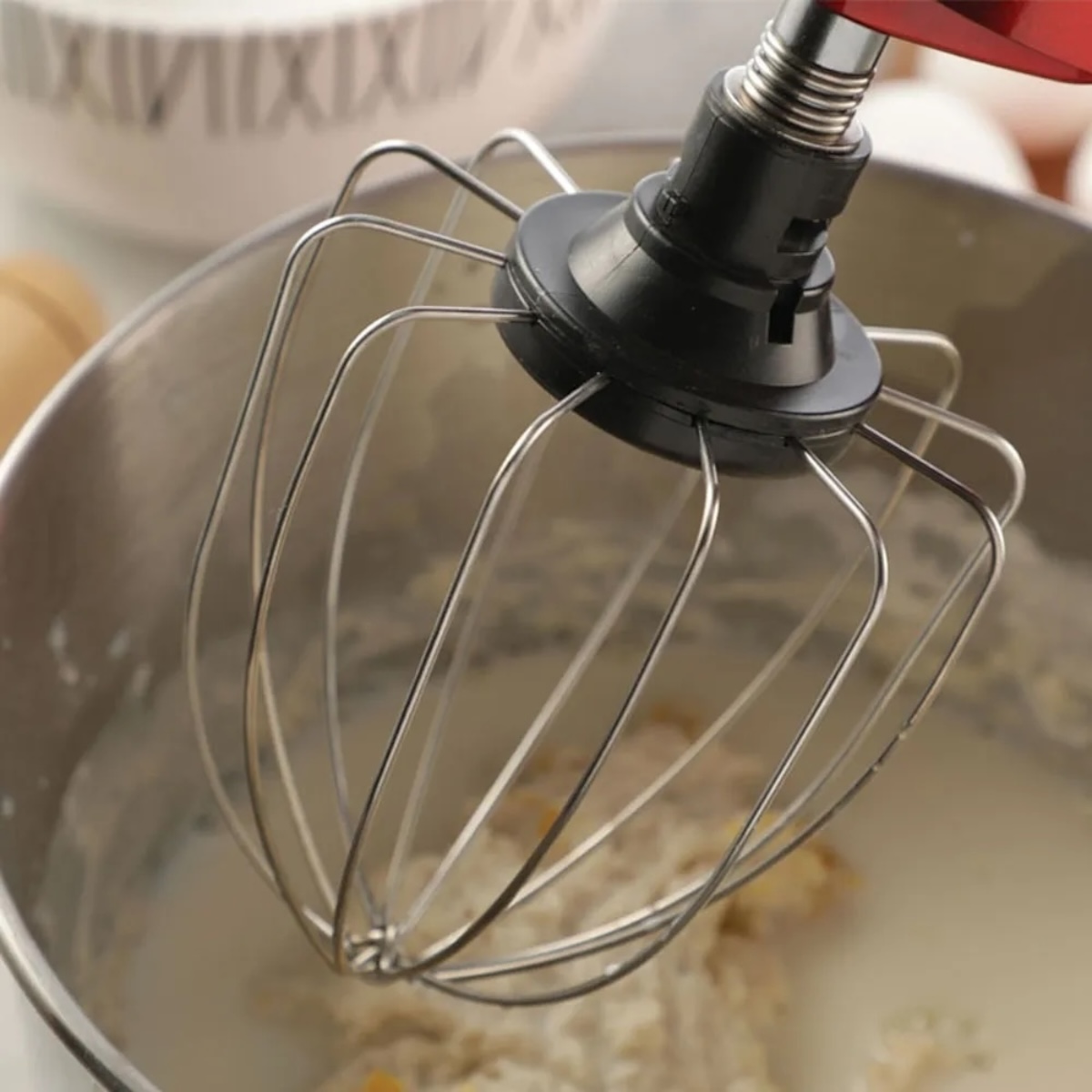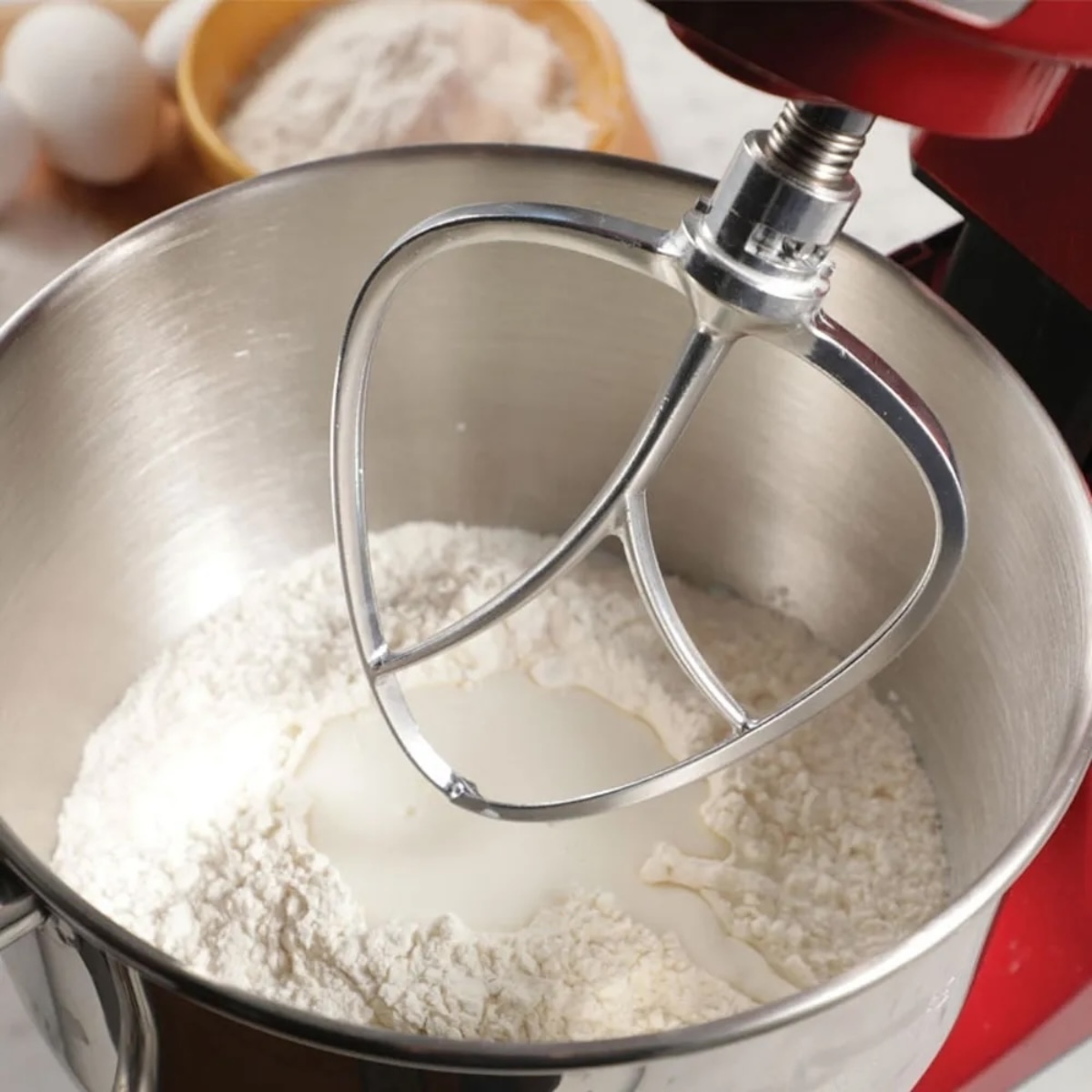 Accesorios para todo tipo de recetas: Incluye batidor de alambre fino, mezclador, gancho para masas pesadas y cobertor anti-salpicaduras.