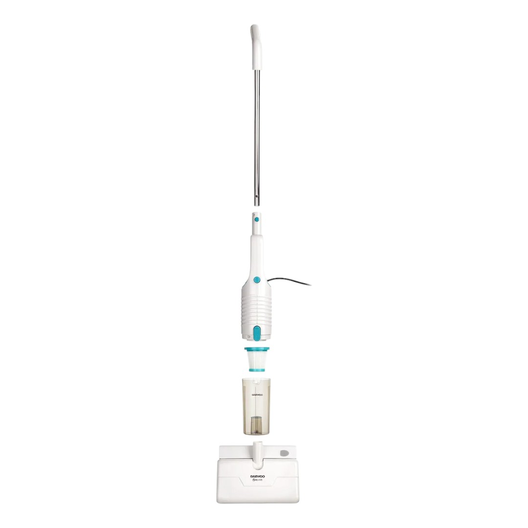 La Aspiradora de Mano Vertical Daewoo Moppy DVC-105 2 en 1 combina potencia y practicidad. Con 400W, 10 accesorios multifuncionales, filtro HEPA lavable y mopa húmeda con tanque de agua, limpia y desinfecta en una sola pasada. Su depósito de 1.2L, cable de 5 metros y diseño liviano aseguran comodidad y eficacia en cada uso.